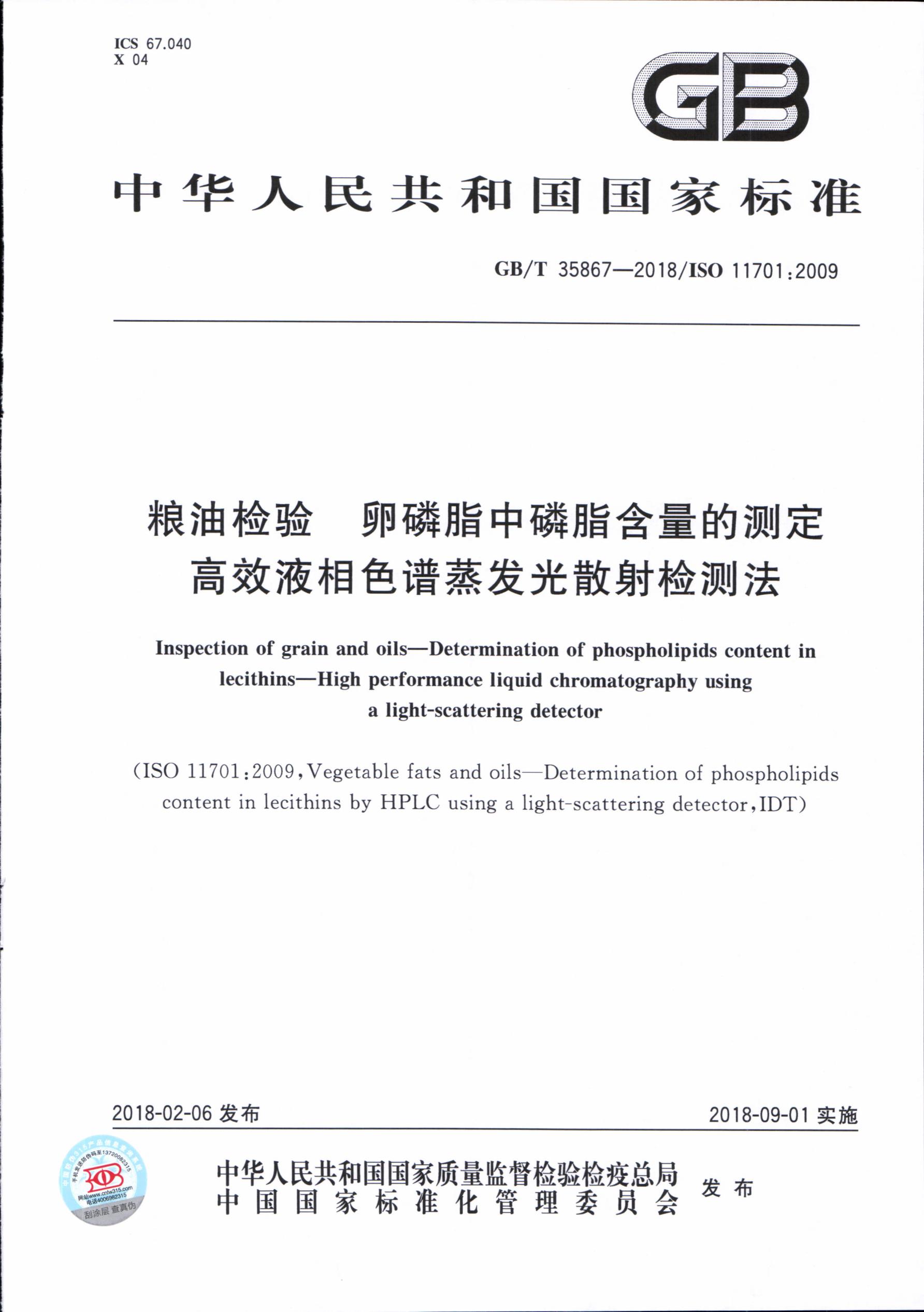 卵磷脂中磷脂含量的測(cè)定GB/T 35867-2018