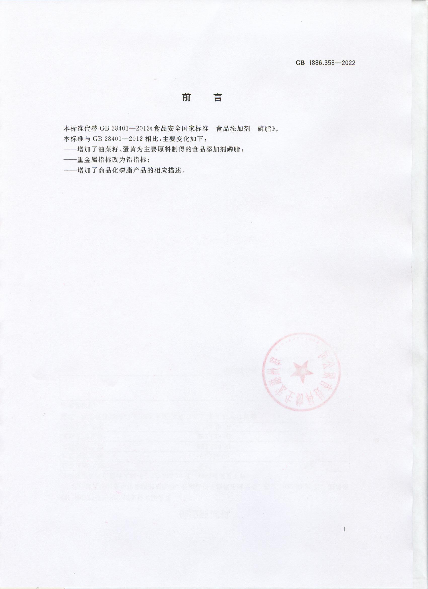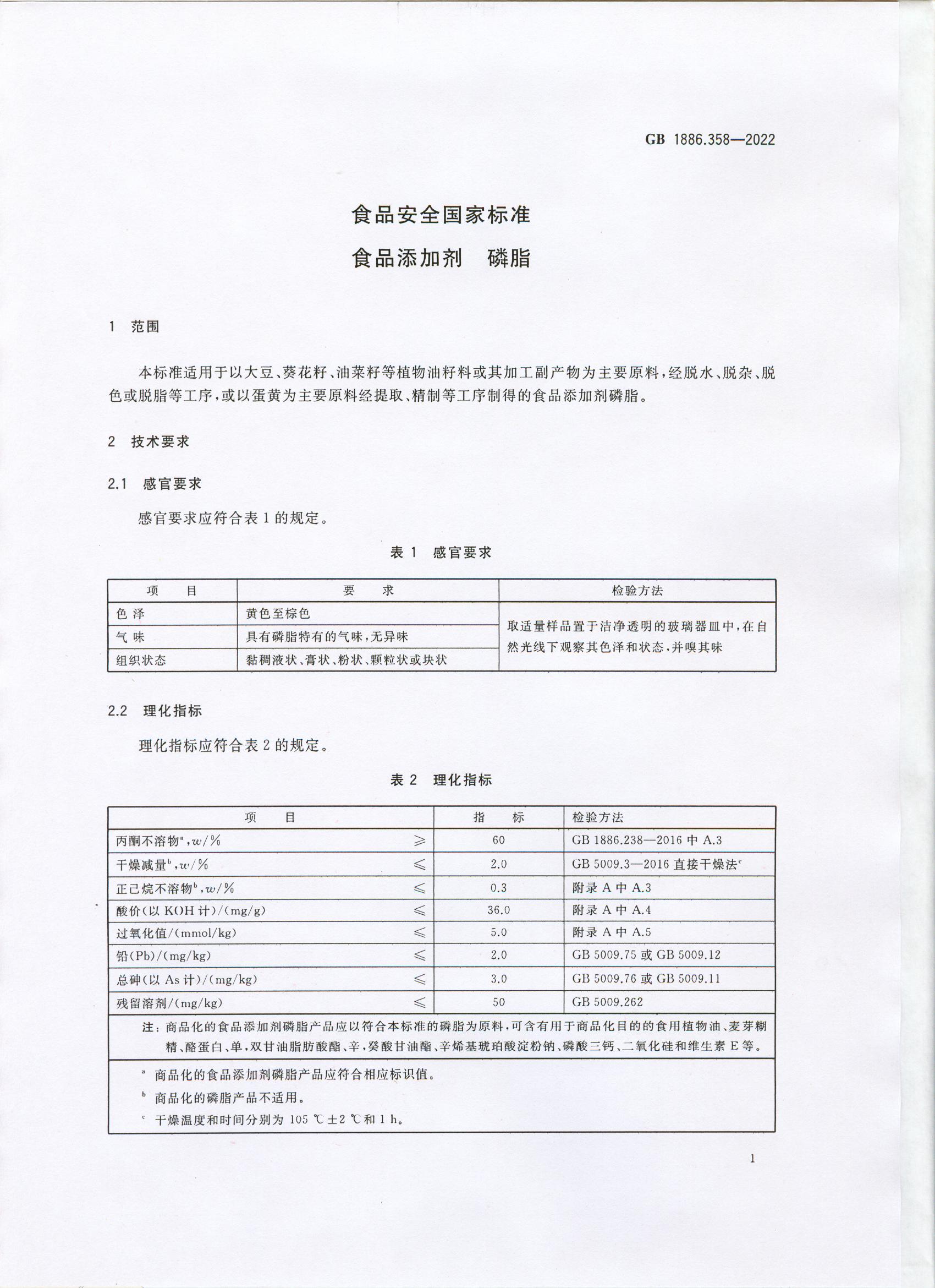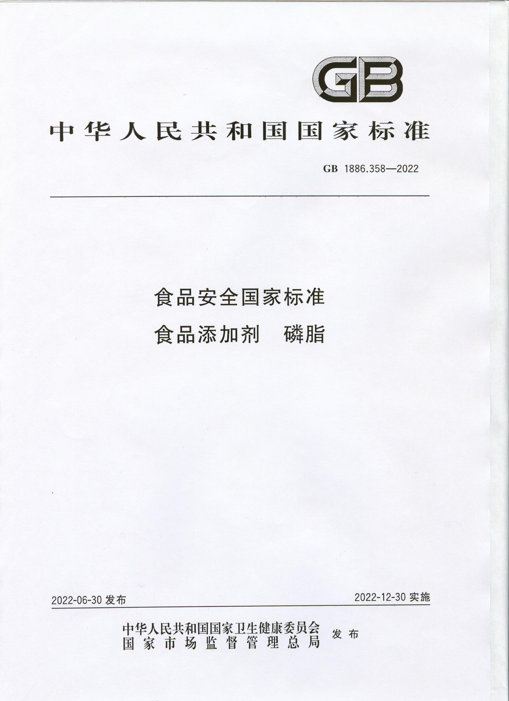 食品添加劑-磷脂GB1886.358-2022